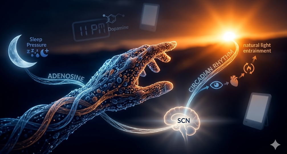 왜 우리는 밤에 충분히 잤다고 생각했는데도 낮에 졸릴까요? 반대로 한밤중에 갑자기 잠이 깨면 다시 잠들기가 그토록 어려울까요? 저 역시 오랫동안 하루에 커피를 4~5잔씩 마시며 만성 피로와 싸워왔습니다. 오후만 되면 찾아오는 극심한 졸음 때문에 업무 효율이 급격히 떨어지곤 했죠. 그런데 수면을 조절하는 두 가지 생물학적 메커니즘을 이해하고 나서, 제 수면의 질이 완전히 달라지는 경험을 했습니다.