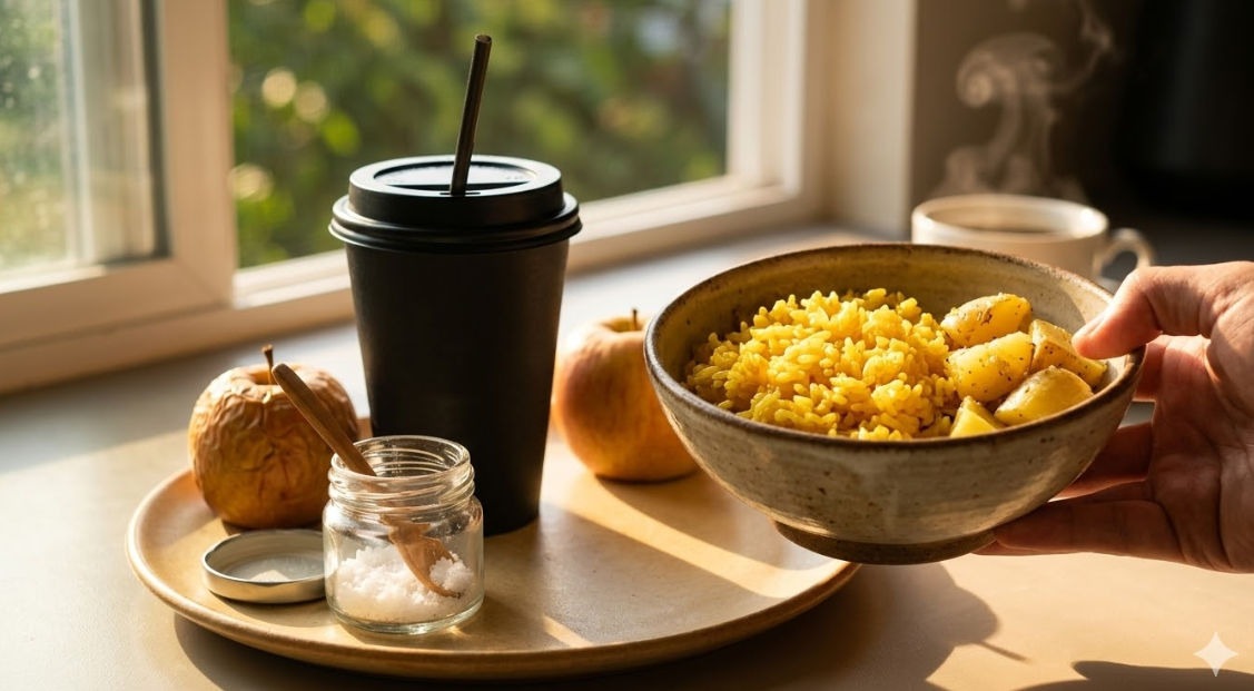 3년 전 제 하루는 이랬습니다. 오전에 아이를 유치원에 보낸 뒤 한솥도시락이나 이삭토스트를 사와 점심을 때웁니다. 고탄수화물과 나트륨 폭탄을 먹고 나면 당연히 혈당이 급등했다가 급락합니다. 오후 2시쯤 되면 미친 듯이 졸립니다. 그때 아이스 아메리카노를 '수혈'합니다. 카페인이 몸에 퍼지면 일시적으로 정신이 번쩍 들지만, 동시에 심장이 두근거리고 과각성 상태가 됩니다. 밤이 되어도 잠이 안 옵니다. 그러면 남편과 야식을 먹고 술 한잔 하며 하루를 마무리합니다. 다음 날 아침, 피곤한 몸을 이끌고 다시 커피를 찾습니다. 악순환의 반복이었습니다.